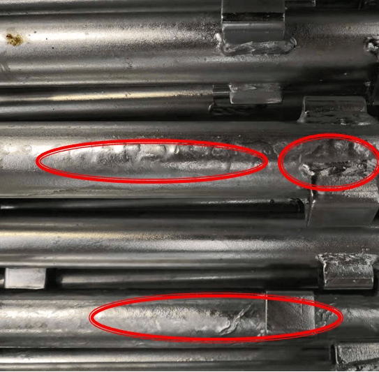 5.鋅溫太低,導(dǎo)致工件取出后鋅液流動性不好,沉積表面形成鋅瘤。