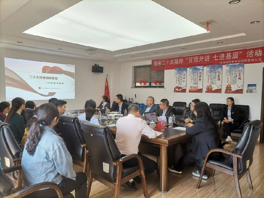 為深入學(xué)習(xí)貫徹黨的二十大精神,引導(dǎo)公司黨員干部全面、準(zhǔn)確、深刻領(lǐng)悟二十大精神。近日,中共株洲市委宣講團(tuán)成員湖南化工職業(yè)技術(shù)學(xué)院肖威副教授蒞臨我司作黨的二十大精神宣講,湖南創(chuàng)林新材管理人員、黨員及員工代表現(xiàn)場聆聽了宣講。